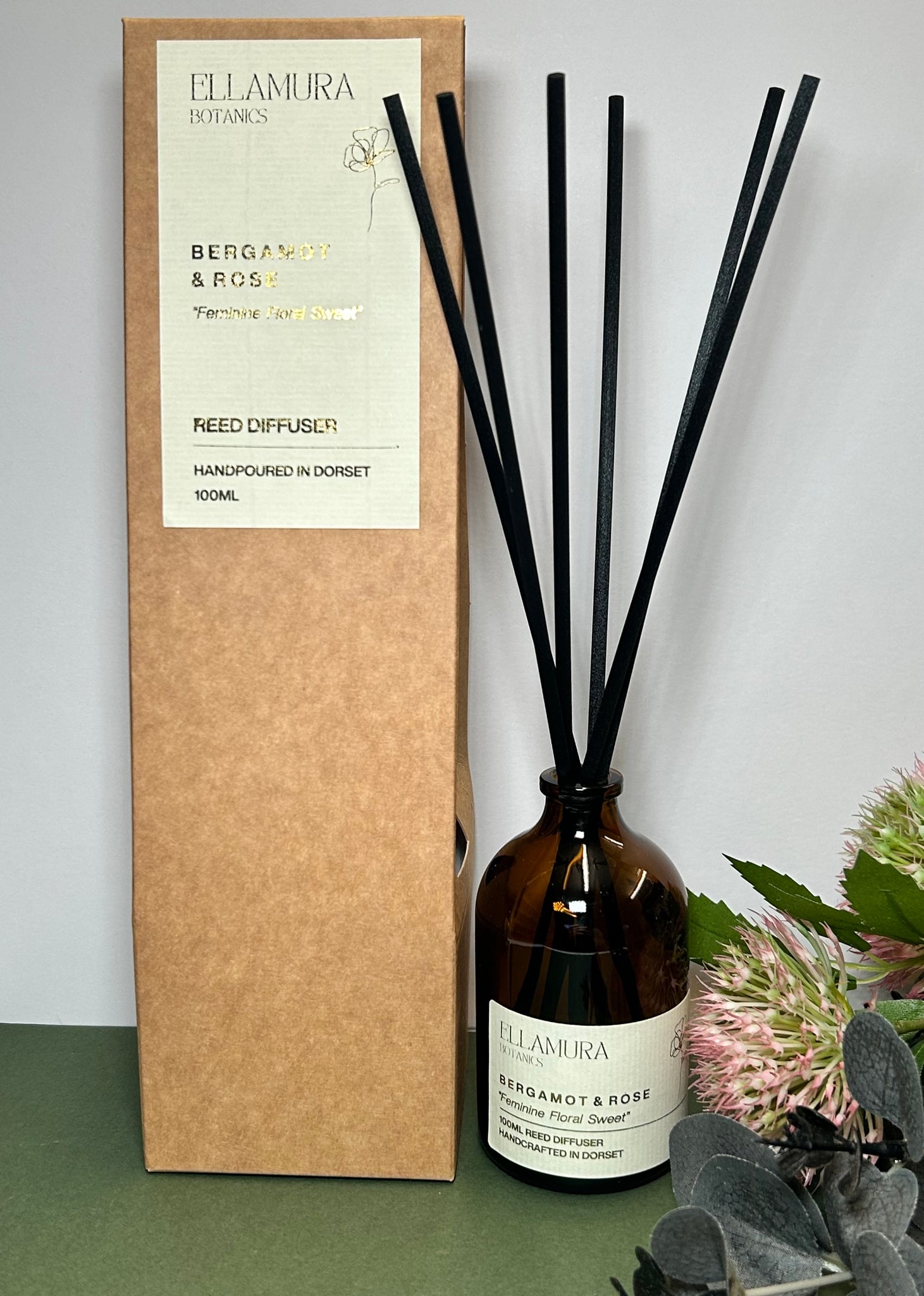 Hand poured into a 100ml amber glass vase. Includes 6 luxury fibre reeds. Option to order with a presentation box if you are gifting, or if you prefer just the diffuser & reeds.